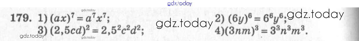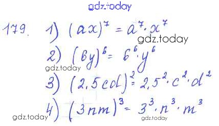 На страницах сайта gdz.today вы найдете учебный и вспомогательный материал, направленный на улучшения знаний школьной программы. ГДЗ - онлайн мир знаний §10. Свойства степени с натуральным показателем Решение к главе 3. Одночлены и многочлены 179 Учебнику по Алгебре для 7 класса Колягин, Ткачёва Просвещение 2014