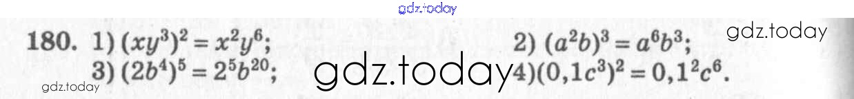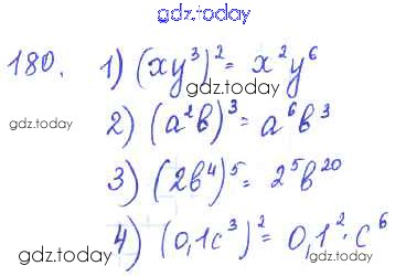 На страницах сайта gdz.today вы найдете учебный и вспомогательный материал, направленный на улучшения знаний школьной программы. ГДЗ - онлайн мир знаний §10. Свойства степени с натуральным показателем Решение к главе 3. Одночлены и многочлены 180 Учебнику по Алгебре для 7 класса Колягин, Ткачёва Просвещение 2014