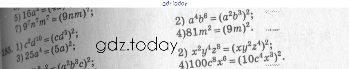На страницах сайта gdz.today вы найдете учебный и вспомогательный материал, направленный на улучшения знаний школьной программы. ГДЗ - онлайн мир знаний §10. Свойства степени с натуральным показателем Решение к главе 3. Одночлены и многочлены 185 Учебнику по Алгебре для 7 класса Колягин, Ткачёва Просвещение 2014