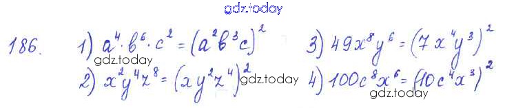На страницах сайта gdz.today вы найдете учебный и вспомогательный материал, направленный на улучшения знаний школьной программы. ГДЗ - онлайн мир знаний §10. Свойства степени с натуральным показателем Решение к главе 3. Одночлены и многочлены 186 Учебнику по Алгебре для 7 класса Колягин, Ткачёва Просвещение 2014