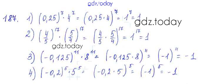 На страницах сайта gdz.today вы найдете учебный и вспомогательный материал, направленный на улучшения знаний школьной программы. ГДЗ - онлайн мир знаний §10. Свойства степени с натуральным показателем Решение к главе 3. Одночлены и многочлены 187 Учебнику по Алгебре для 7 класса Колягин, Ткачёва Просвещение 2014