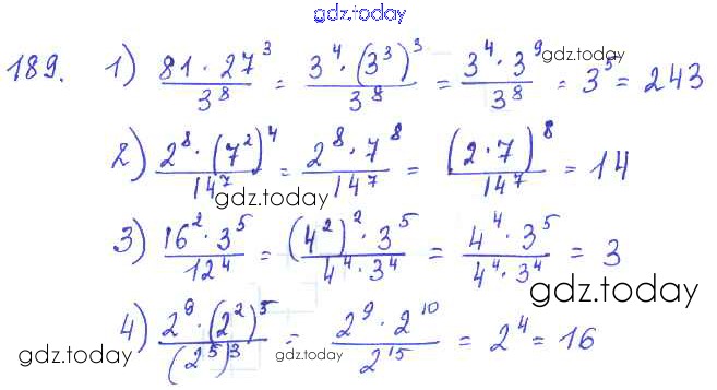 На страницах сайта gdz.today вы найдете учебный и вспомогательный материал, направленный на улучшения знаний школьной программы. ГДЗ - онлайн мир знаний §10. Свойства степени с натуральным показателем Решение к главе 3. Одночлены и многочлены 189 Учебнику по Алгебре для 7 класса Колягин, Ткачёва Просвещение 2014