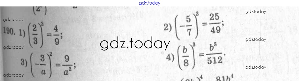 На страницах сайта gdz.today вы найдете учебный и вспомогательный материал, направленный на улучшения знаний школьной программы. ГДЗ - онлайн мир знаний §10. Свойства степени с натуральным показателем Решение к главе 3. Одночлены и многочлены 190 Учебнику по Алгебре для 7 класса Колягин, Ткачёва Просвещение 2014
