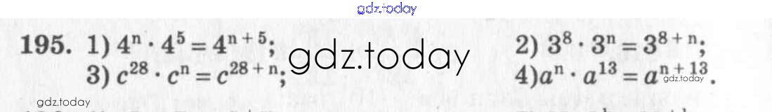 На страницах сайта gdz.today вы найдете учебный и вспомогательный материал, направленный на улучшения знаний школьной программы. ГДЗ - онлайн мир знаний §10. Свойства степени с натуральным показателем Решение к главе 3. Одночлены и многочлены 195 Учебнику по Алгебре для 7 класса Колягин, Ткачёва Просвещение 2014