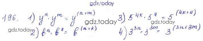 На страницах сайта gdz.today вы найдете учебный и вспомогательный материал, направленный на улучшения знаний школьной программы. ГДЗ - онлайн мир знаний §10. Свойства степени с натуральным показателем Решение к главе 3. Одночлены и многочлены 196 Учебнику по Алгебре для 7 класса Колягин, Ткачёва Просвещение 2014
