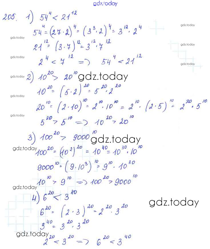 На страницах сайта gdz.today вы найдете учебный и вспомогательный материал, направленный на улучшения знаний школьной программы. ГДЗ - онлайн мир знаний §10. Свойства степени с натуральным показателем Решение к главе 3. Одночлены и многочлены 205 Учебнику по Алгебре для 7 класса Колягин, Ткачёва Просвещение 2014