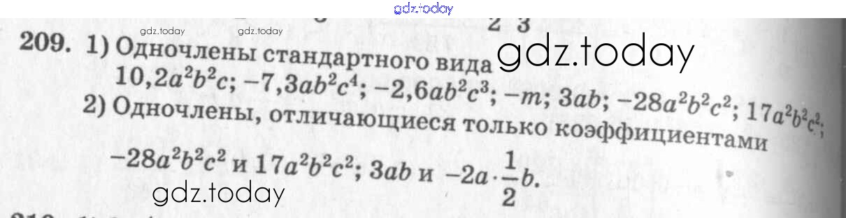 Ответы к §11. Одночлен. Стандартный вид одночлена Решение к главе 3. Одночлены и многочлены 209 Учебнику по Алгебре для 7 класса Колягин, Ткачёва Просвещение 2014