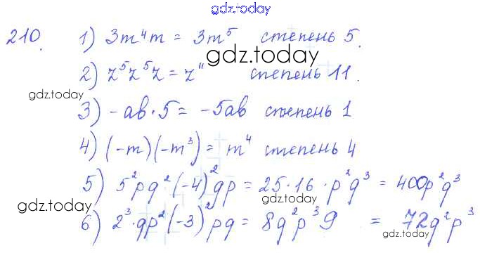 Ответы к §11. Одночлен. Стандартный вид одночлена Решение к главе 3. Одночлены и многочлены 210 Учебнику по Алгебре для 7 класса Колягин, Ткачёва Просвещение 2014