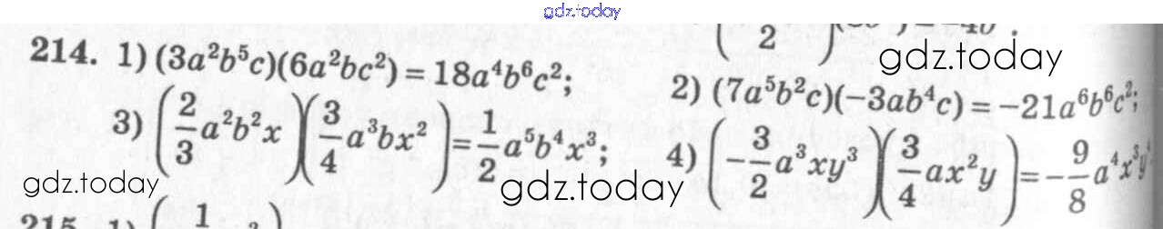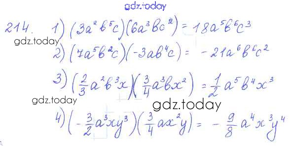 Ответы к §12. Умножение одночленов Решение к главе 3. Одночлены и многочлены 214 Учебнику по Алгебре для 7 класса Колягин, Ткачёва Просвещение 2014