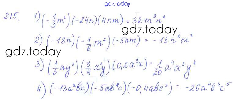 Ответы к §12. Умножение одночленов Решение к главе 3. Одночлены и многочлены 215 Учебнику по Алгебре для 7 класса Колягин, Ткачёва Просвещение 2014