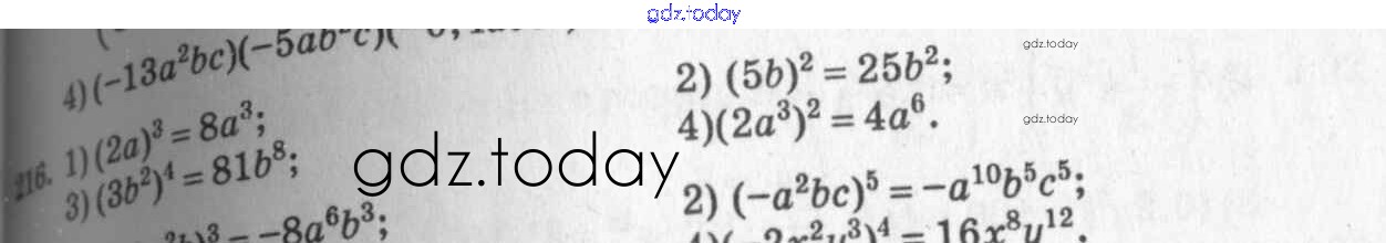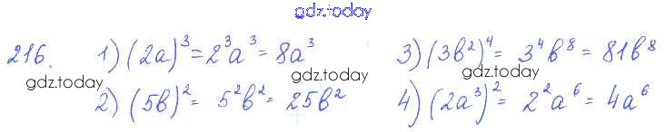 Ответы к §12. Умножение одночленов Решение к главе 3. Одночлены и многочлены 216 Учебнику по Алгебре для 7 класса Колягин, Ткачёва Просвещение 2014