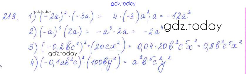 Ответы к §12. Умножение одночленов Решение к главе 3. Одночлены и многочлены 219 Учебнику по Алгебре для 7 класса Колягин, Ткачёва Просвещение 2014