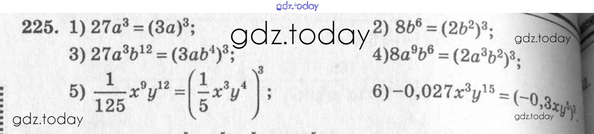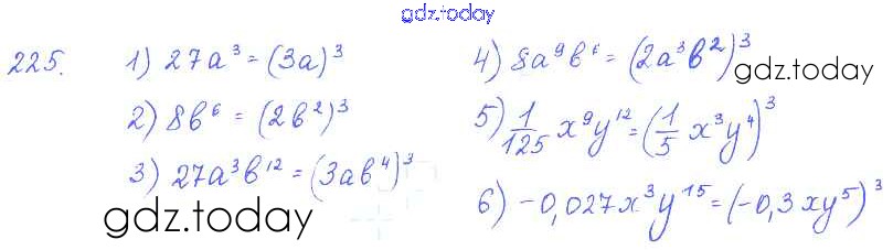 Ответы к §12. Умножение одночленов Решение к главе 3. Одночлены и многочлены 225 Учебнику по Алгебре для 7 класса Колягин, Ткачёва Просвещение 2014