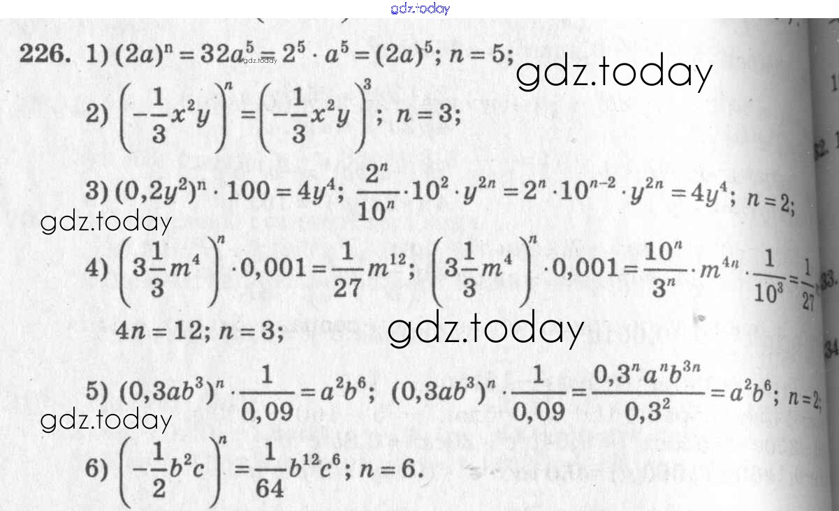 Ответы к §12. Умножение одночленов Решение к главе 3. Одночлены и многочлены 226 Учебнику по Алгебре для 7 класса Колягин, Ткачёва Просвещение 2014