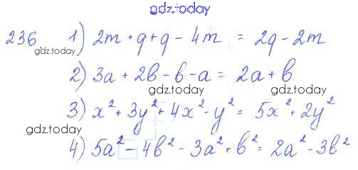 Ответы к §14. Приведение подобных членов Решение к главе 3. Одночлены и многочлены 236 Учебнику по Алгебре для 7 класса Колягин, Ткачёва Просвещение 2014