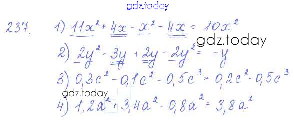 Ответы к §14. Приведение подобных членов Решение к главе 3. Одночлены и многочлены 237 Учебнику по Алгебре для 7 класса Колягин, Ткачёва Просвещение 2014