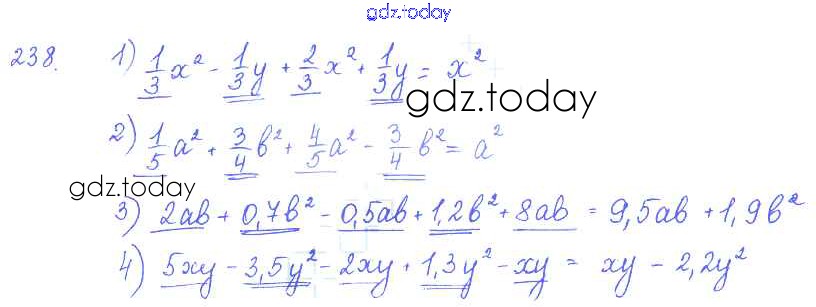 Ответы к §14. Приведение подобных членов Решение к главе 3. Одночлены и многочлены 238 Учебнику по Алгебре для 7 класса Колягин, Ткачёва Просвещение 2014