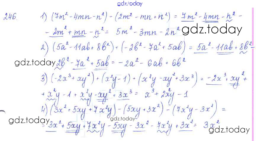 Ответы к §15. Сложение и вычитание многочленов Решение к главе 3. Одночлены и многочлены 246 Учебнику по Алгебре для 7 класса Колягин, Ткачёва Просвещение 2014
