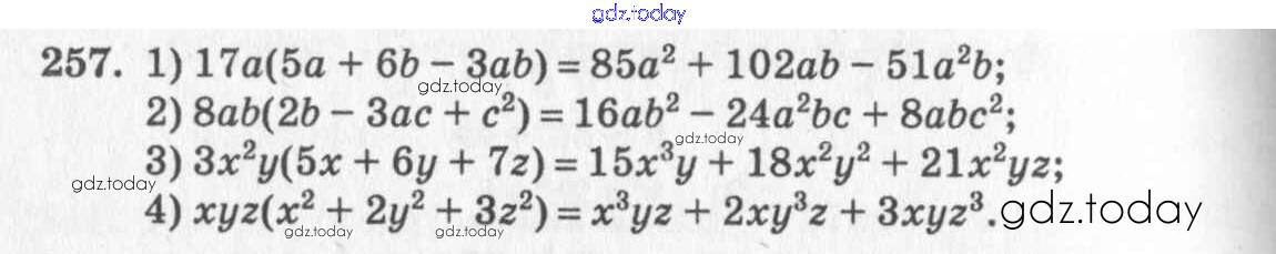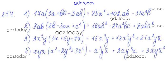 На страницах сайта gdz.today вы найдете учебный и вспомогательный материал, направленный на улучшения знаний школьной программы. ГДЗ - онлайн мир знаний §16. Умножение многочлена на одночлен Решение к главе 3. Одночлены и многочлены 257 Учебнику по Алгебре для 7 класса Колягин, Ткачёва Просвещение 2014