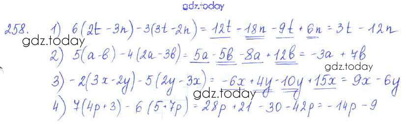 На страницах сайта gdz.today вы найдете учебный и вспомогательный материал, направленный на улучшения знаний школьной программы. ГДЗ - онлайн мир знаний §16. Умножение многочлена на одночлен Решение к главе 3. Одночлены и многочлены 258 Учебнику по Алгебре для 7 класса Колягин, Ткачёва Просвещение 2014