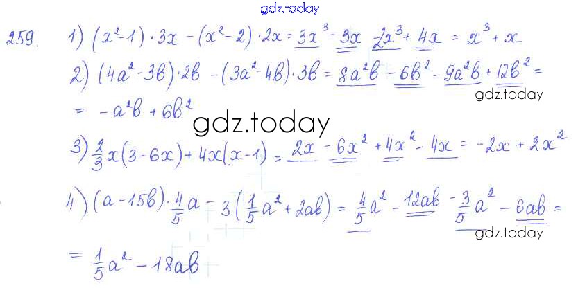 Ответы к §16. Умножение многочлена на одночлен Решение к главе 3. Одночлены и многочлены 259 Учебнику по Алгебре для 7 класса Колягин, Ткачёва Просвещение 2014