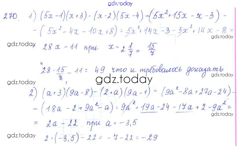 На страницах сайта gdz.today вы найдете учебный и вспомогательный материал, направленный на улучшения знаний школьной программы. ГДЗ - онлайн мир знаний §17. Умножение многочлена на многочлен Решение к главе 3. Одночлены и многочлены 270 Учебнику по Алгебре для 7 класса Колягин, Ткачёва Просвещение 2014