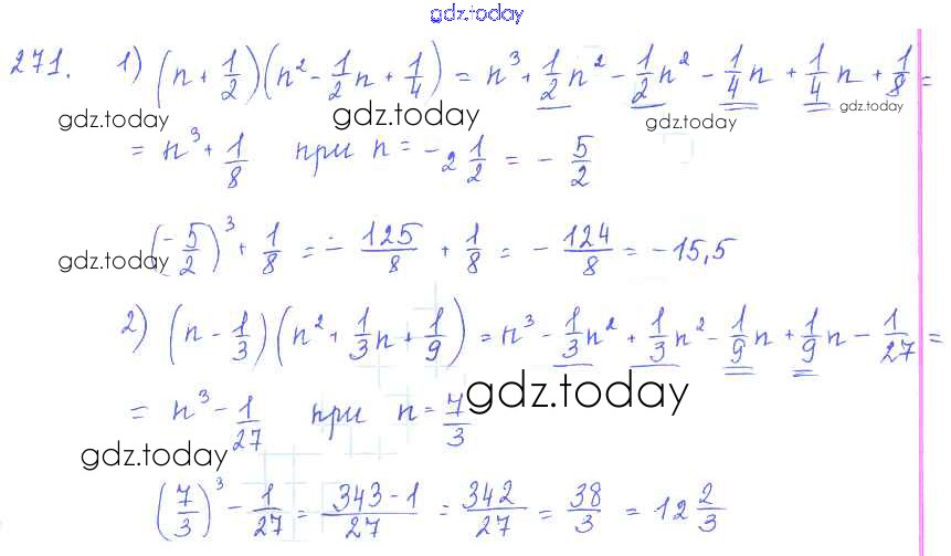 На страницах сайта gdz.today вы найдете учебный и вспомогательный материал, направленный на улучшения знаний школьной программы. ГДЗ - онлайн мир знаний §17. Умножение многочлена на многочлен Решение к главе 3. Одночлены и многочлены 271 Учебнику по Алгебре для 7 класса Колягин, Ткачёва Просвещение 2014
