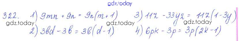 На страницах сайта gdz.today вы найдете учебный и вспомогательный материал, направленный на улучшения знаний школьной программы. ГДЗ - онлайн мир знаний §19. Вынесение общего множителя за скобки Решение к главе 4. Разложение многочленов на множители 322 Учебнику по Алгебре для 7 класса Колягин, Ткачёва Просвещение 2014