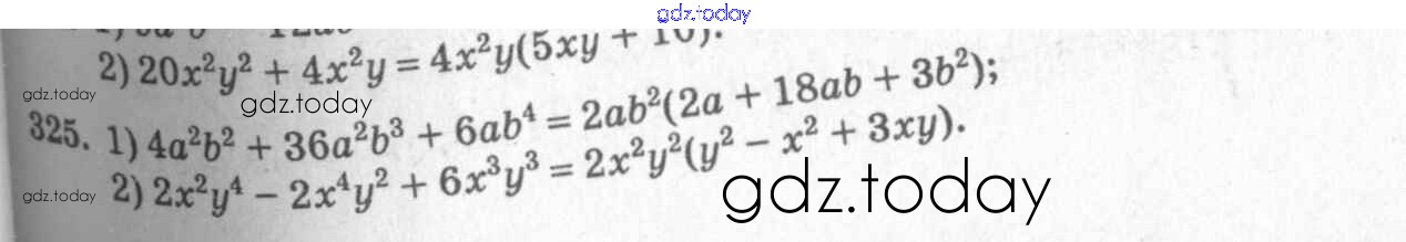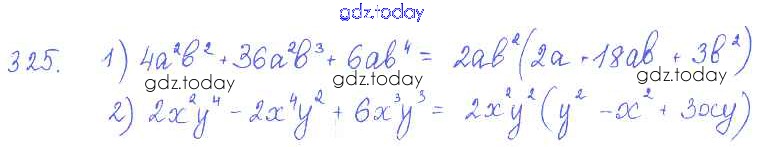 На страницах сайта gdz.today вы найдете учебный и вспомогательный материал, направленный на улучшения знаний школьной программы. ГДЗ - онлайн мир знаний §19. Вынесение общего множителя за скобки Решение к главе 4. Разложение многочленов на множители 325 Учебнику по Алгебре для 7 класса Колягин, Ткачёва Просвещение 2014