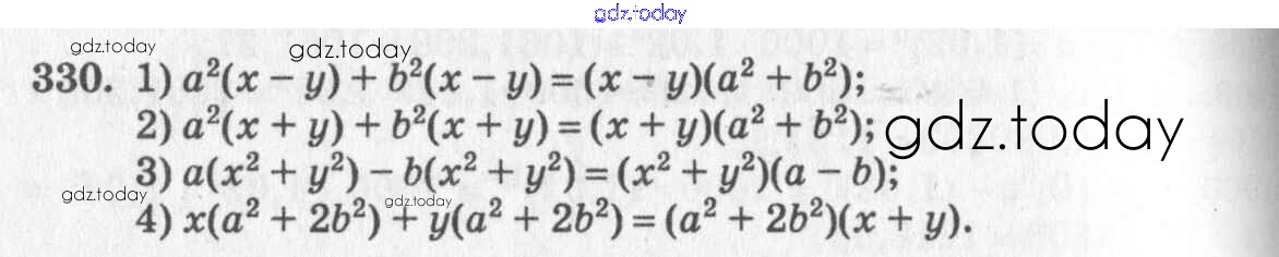 На страницах сайта gdz.today вы найдете учебный и вспомогательный материал, направленный на улучшения знаний школьной программы. ГДЗ - онлайн мир знаний §19. Вынесение общего множителя за скобки Решение к главе 4. Разложение многочленов на множители 330 Учебнику по Алгебре для 7 класса Колягин, Ткачёва Просвещение 2014