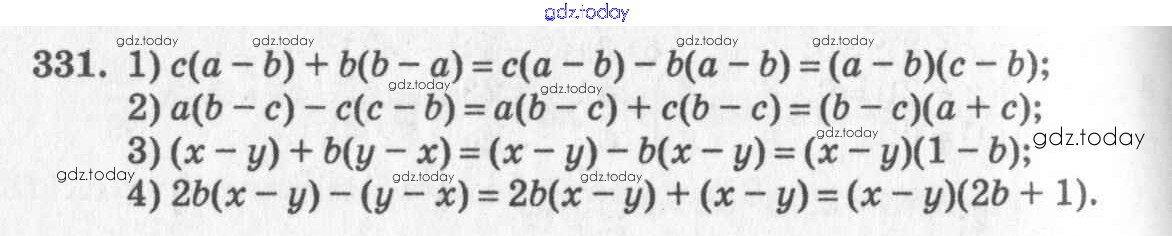 Ответы к §19. Вынесение общего множителя за скобки Решение к главе 4. Разложение многочленов на множители 331 Учебнику по Алгебре для 7 класса Колягин, Ткачёва Просвещение 2014