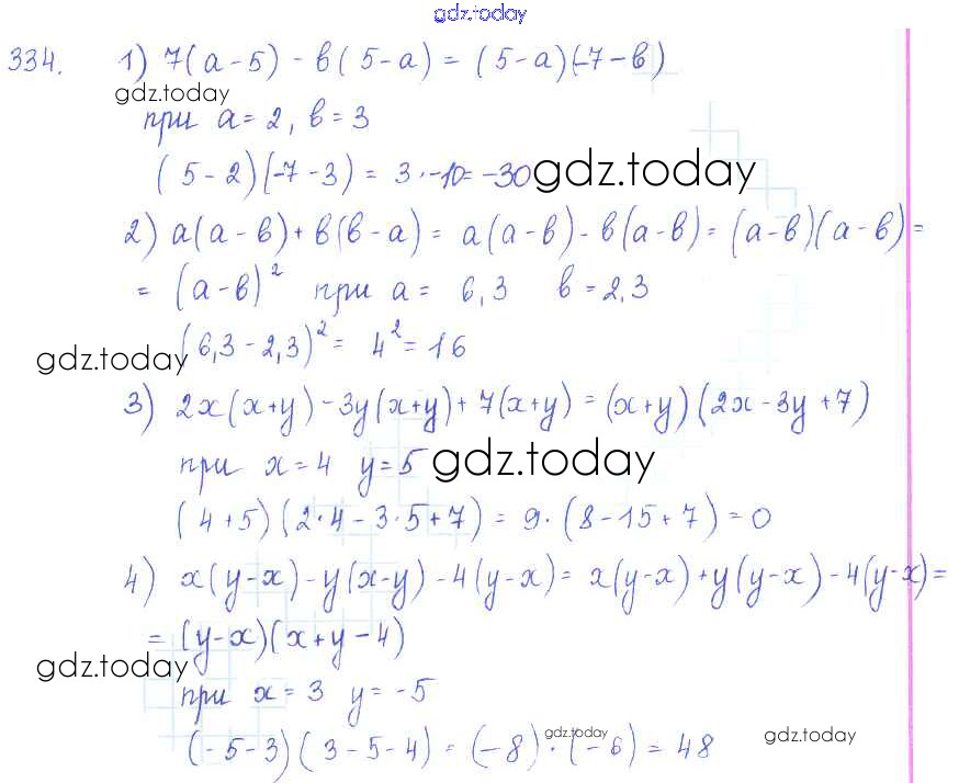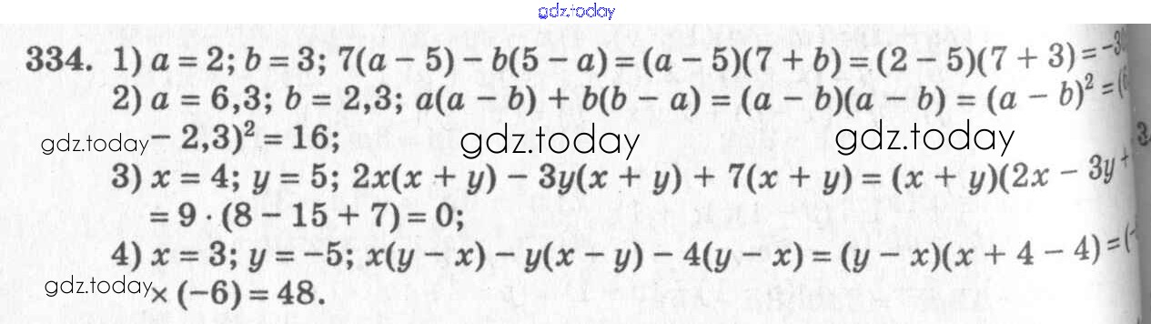 На страницах сайта gdz.today вы найдете учебный и вспомогательный материал, направленный на улучшения знаний школьной программы. ГДЗ - онлайн мир знаний §19. Вынесение общего множителя за скобки Решение к главе 4. Разложение многочленов на множители 334 Учебнику по Алгебре для 7 класса Колягин, Ткачёва Просвещение 2014