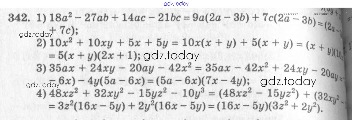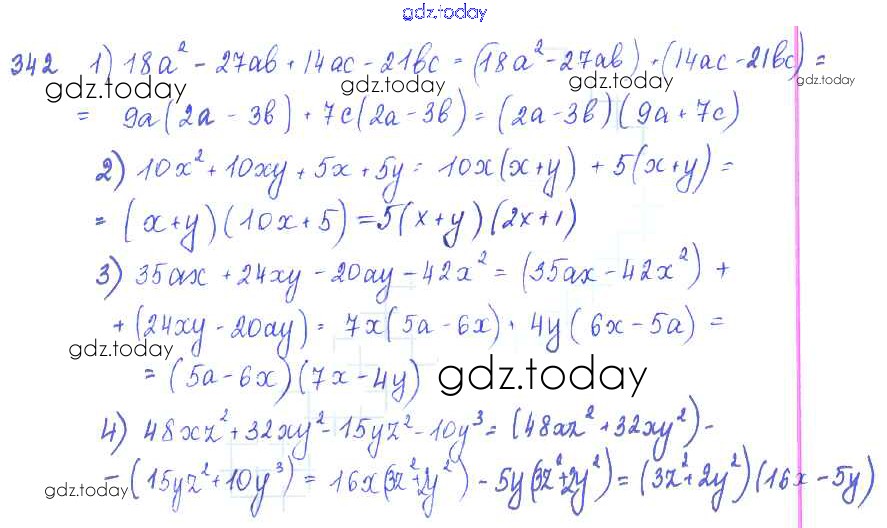 Ответы к §20. Способ группировки Решение к главе 4. Разложение многочленов на множители 342 Учебнику по Алгебре для 7 класса Колягин, Ткачёва Просвещение 2014
