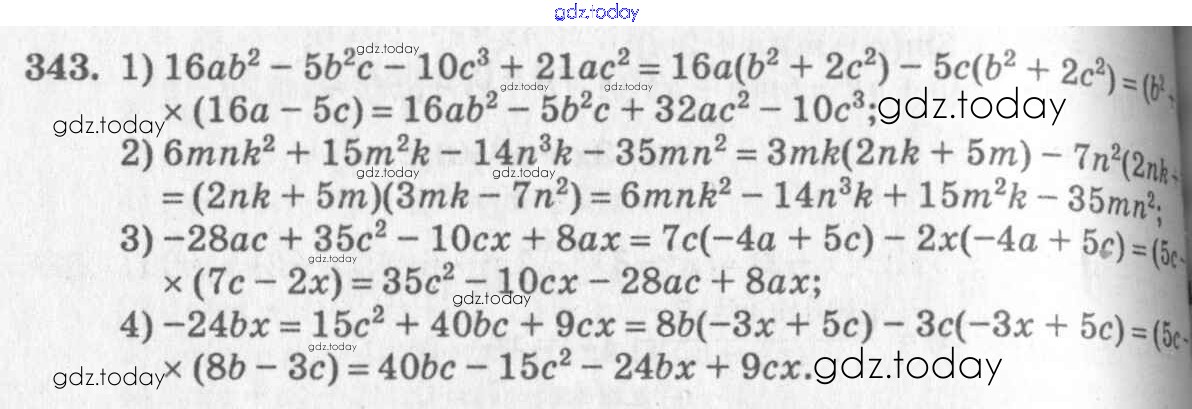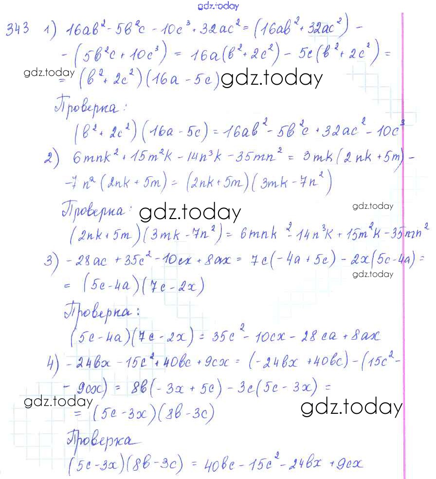 Ответы к §20. Способ группировки Решение к главе 4. Разложение многочленов на множители 343 Учебнику по Алгебре для 7 класса Колягин, Ткачёва Просвещение 2014