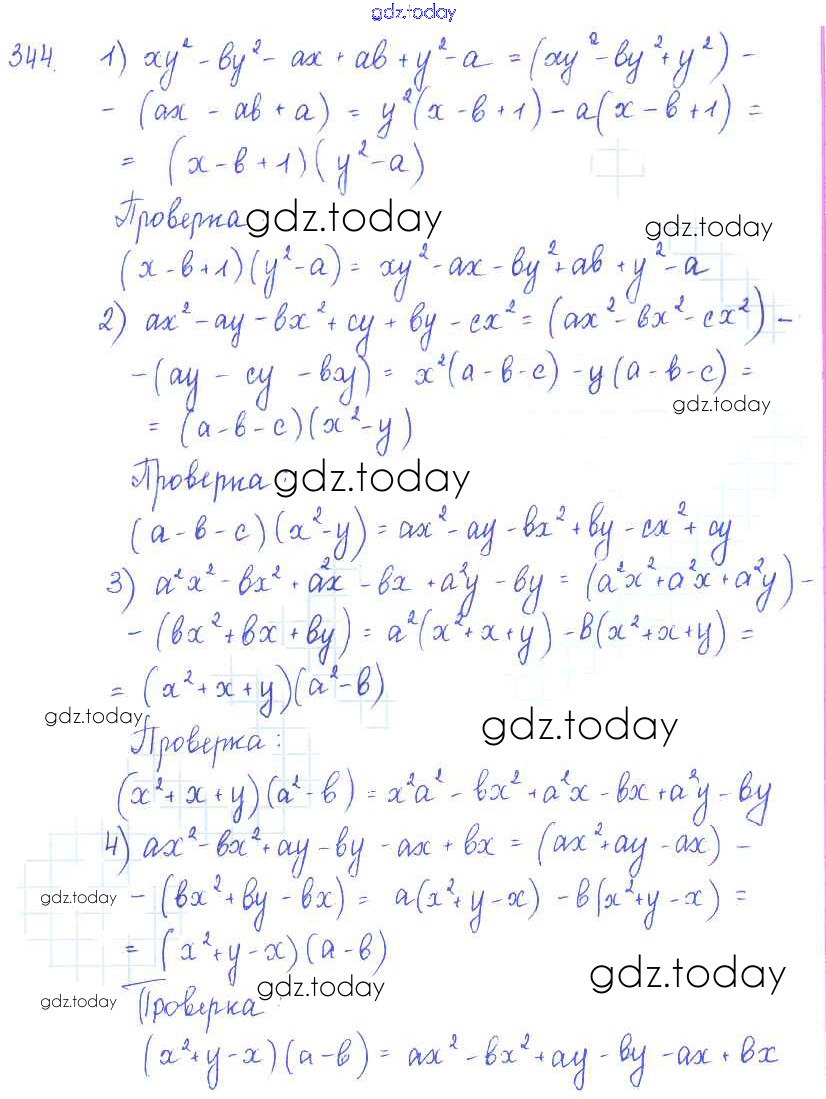 Ответы к §20. Способ группировки Решение к главе 4. Разложение многочленов на множители 344 Учебнику по Алгебре для 7 класса Колягин, Ткачёва Просвещение 2014
