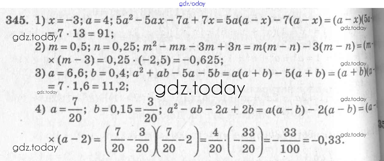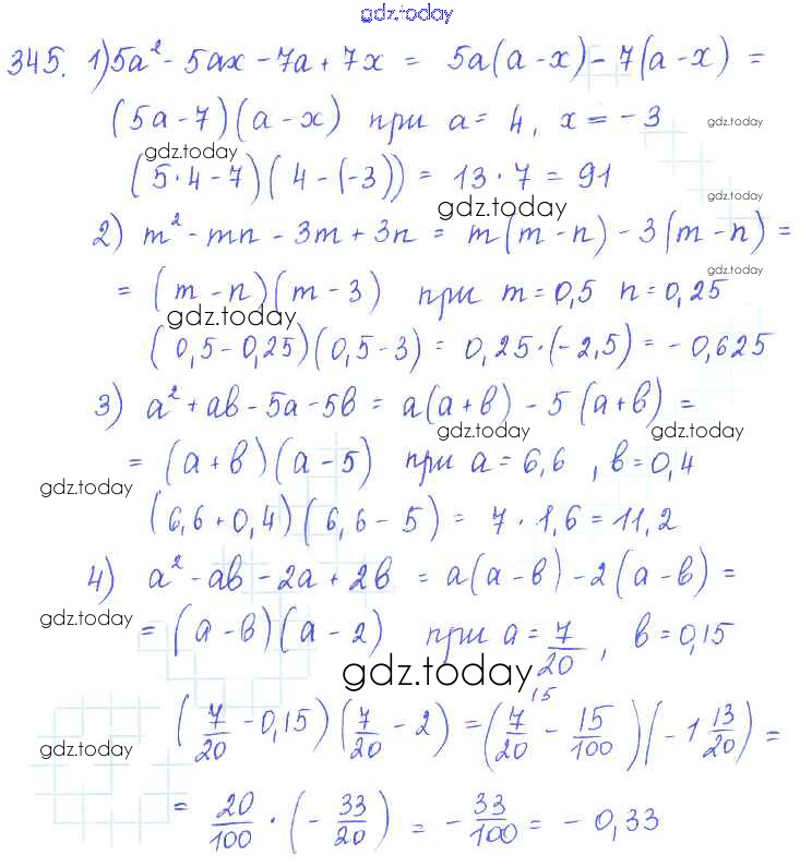 Ответы к §20. Способ группировки Решение к главе 4. Разложение многочленов на множители 345 Учебнику по Алгебре для 7 класса Колягин, Ткачёва Просвещение 2014