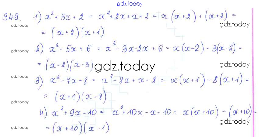 На страницах сайта gdz.today вы найдете учебный и вспомогательный материал, направленный на улучшения знаний школьной программы. ГДЗ - онлайн мир знаний §20. Способ группировки Решение к главе 4. Разложение многочленов на множители 349 Учебнику по Алгебре для 7 класса Колягин, Ткачёва Просвещение 2014
