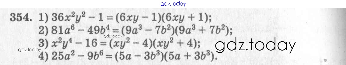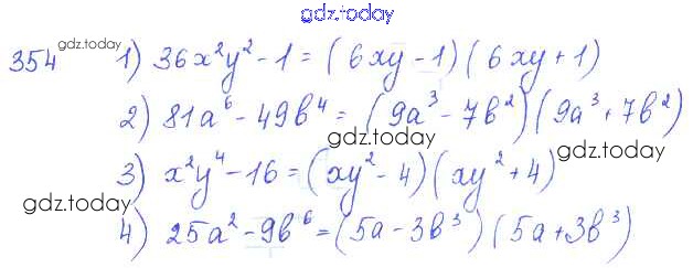 На страницах сайта gdz.today вы найдете учебный и вспомогательный материал, направленный на улучшения знаний школьной программы. ГДЗ - онлайн мир знаний §21. Формула разности квадратов Решение к главе 4. Разложение многочленов на множители 354 Учебнику по Алгебре для 7 класса Колягин, Ткачёва Просвещение 2014
