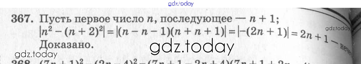 На страницах сайта gdz.today вы найдете учебный и вспомогательный материал, направленный на улучшения знаний школьной программы. ГДЗ - онлайн мир знаний §21. Формула разности квадратов Решение к главе 4. Разложение многочленов на множители 367 Учебнику по Алгебре для 7 класса Колягин, Ткачёва Просвещение 2014