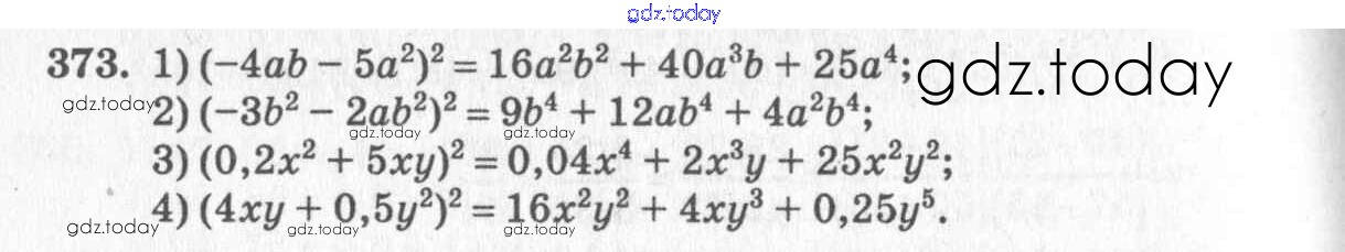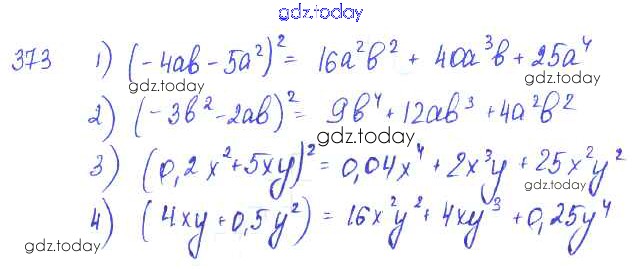 На страницах сайта gdz.today вы найдете учебный и вспомогательный материал, направленный на улучшения знаний школьной программы. ГДЗ - онлайн мир знаний §22. Квадрат суммы. Квадрат разности Решение к главе 4. Разложение многочленов на множители 373 Учебнику по Алгебре для 7 класса Колягин, Ткачёва Просвещение 2014