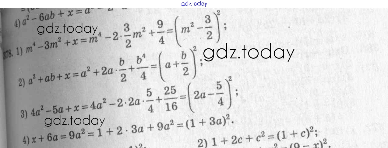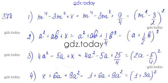 Ответы к §22. Квадрат суммы. Квадрат разности Решение к главе 4. Разложение многочленов на множители 378 Учебнику по Алгебре для 7 класса Колягин, Ткачёва Просвещение 2014