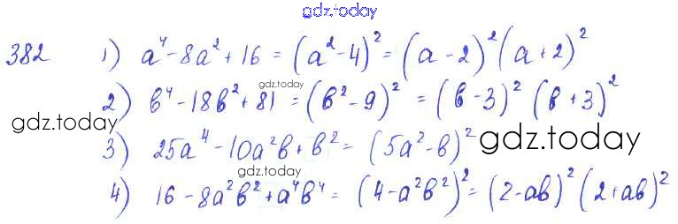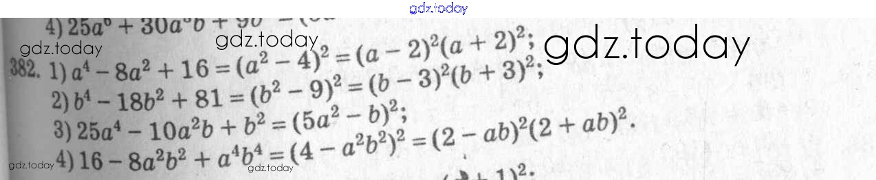 Ответы к §22. Квадрат суммы. Квадрат разности Решение к главе 4. Разложение многочленов на множители 382 Учебнику по Алгебре для 7 класса Колягин, Ткачёва Просвещение 2014