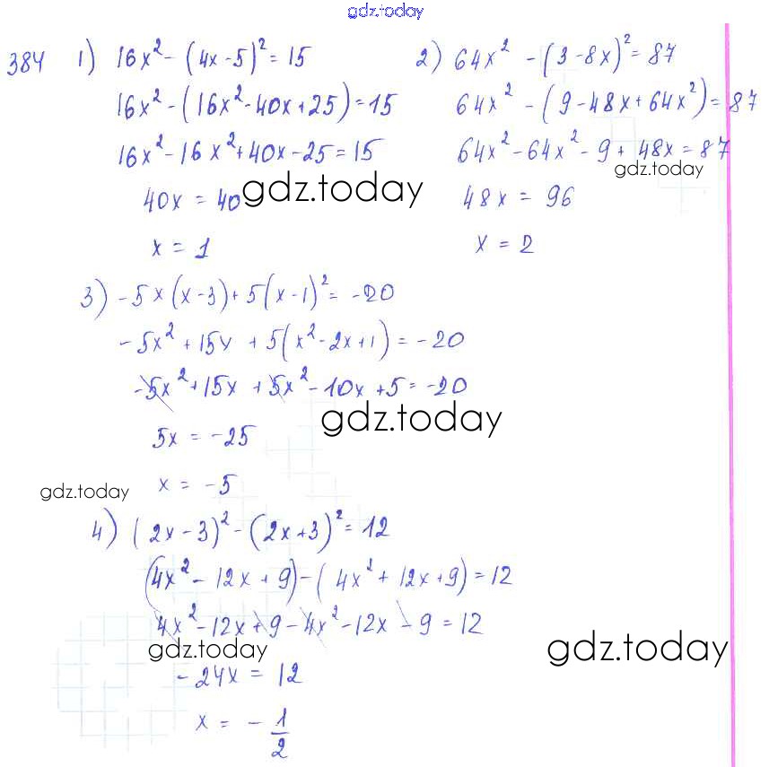 На страницах сайта gdz.today вы найдете учебный и вспомогательный материал, направленный на улучшения знаний школьной программы. ГДЗ - онлайн мир знаний §22. Квадрат суммы. Квадрат разности Решение к главе 4. Разложение многочленов на множители 384 Учебнику по Алгебре для 7 класса Колягин, Ткачёва Просвещение 2014