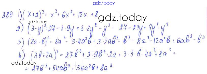 На страницах сайта gdz.today вы найдете учебный и вспомогательный материал, направленный на улучшения знаний школьной программы. ГДЗ - онлайн мир знаний §22. Квадрат суммы. Квадрат разности Решение к главе 4. Разложение многочленов на множители 389 Учебнику по Алгебре для 7 класса Колягин, Ткачёва Просвещение 2014