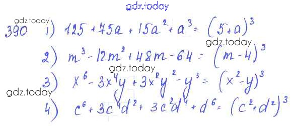 На страницах сайта gdz.today вы найдете учебный и вспомогательный материал, направленный на улучшения знаний школьной программы. ГДЗ - онлайн мир знаний §22. Квадрат суммы. Квадрат разности Решение к главе 4. Разложение многочленов на множители 390 Учебнику по Алгебре для 7 класса Колягин, Ткачёва Просвещение 2014