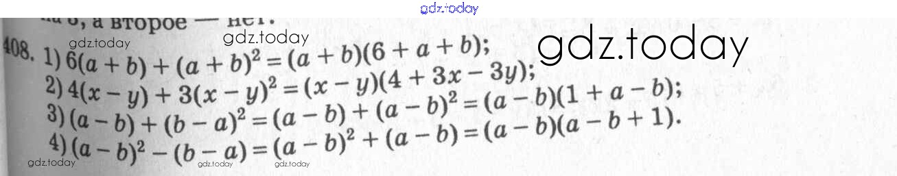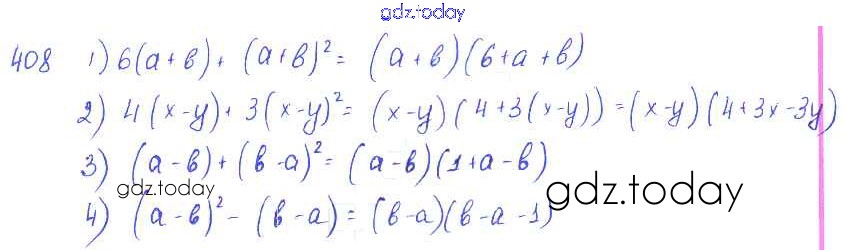 На страницах сайта gdz.today вы найдете учебный и вспомогательный материал, направленный на улучшения знаний школьной программы. ГДЗ - онлайн мир знаний Упражнения к главе 4 Решение к главе 4. Разложение многочленов на множители 408 Учебнику по Алгебре для 7 класса Колягин, Ткачёва Просвещение 2014