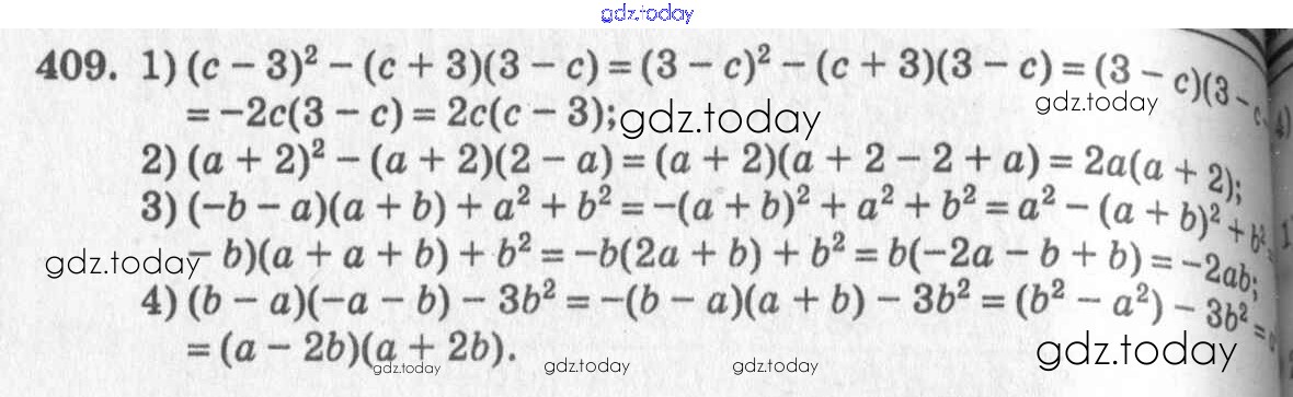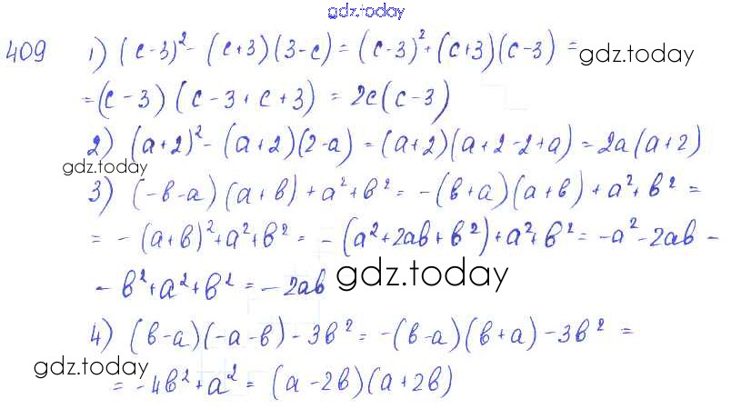 На страницах сайта gdz.today вы найдете учебный и вспомогательный материал, направленный на улучшения знаний школьной программы. ГДЗ - онлайн мир знаний Упражнения к главе 4 Решение к главе 4. Разложение многочленов на множители 409 Учебнику по Алгебре для 7 класса Колягин, Ткачёва Просвещение 2014