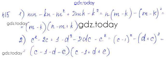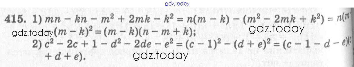 На страницах сайта gdz.today вы найдете учебный и вспомогательный материал, направленный на улучшения знаний школьной программы. ГДЗ - онлайн мир знаний Упражнения к главе 4 Решение к главе 4. Разложение многочленов на множители 415 Учебнику по Алгебре для 7 класса Колягин, Ткачёва Просвещение 2014