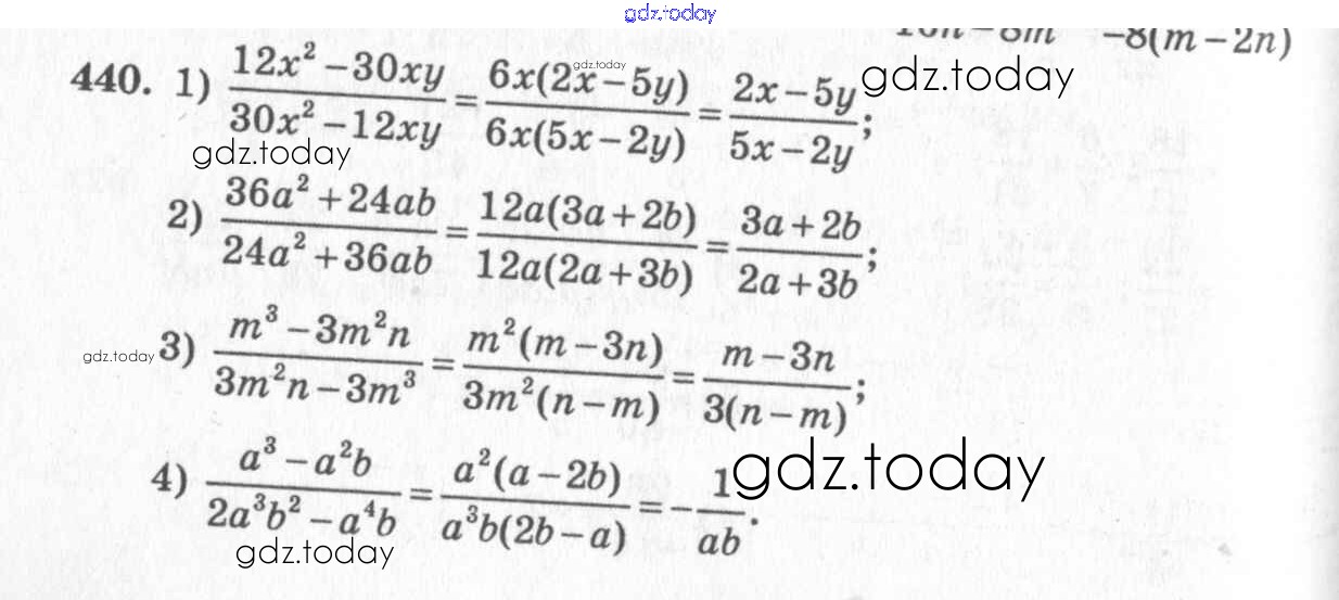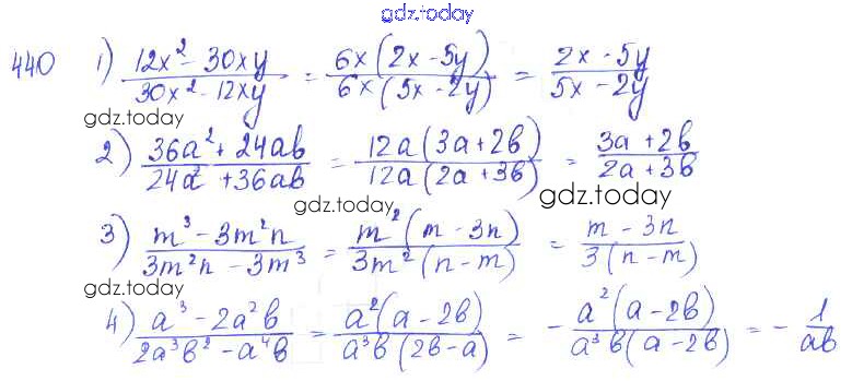 На страницах сайта gdz.today вы найдете учебный и вспомогательный материал, направленный на улучшения знаний школьной программы. ГДЗ - онлайн мир знаний §24. Алгебраическая дробь. Сокращение дробей Решение к главе 5. Алгебраические дроби 440 Учебнику по Алгебре для 7 класса Колягин, Ткачёва Просвещение 2014