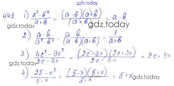 На страницах сайта gdz.today вы найдете учебный и вспомогательный материал, направленный на улучшения знаний школьной программы. ГДЗ - онлайн мир знаний §24. Алгебраическая дробь. Сокращение дробей Решение к главе 5. Алгебраические дроби 441 Учебнику по Алгебре для 7 класса Колягин, Ткачёва Просвещение 2014